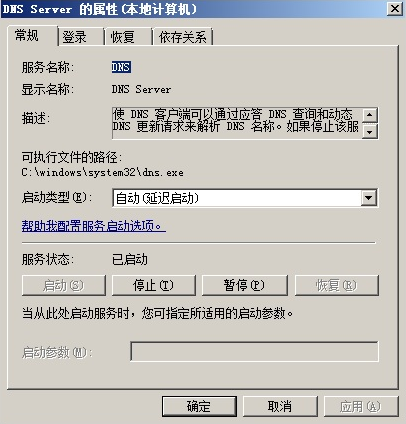 設(shè)置DNS SERVER服務(wù)的啟動方式為"自動(延遲啟動)"