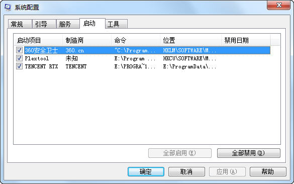 4、單擊“啟用”標(biāo)簽卡,然后點(diǎn)擊“全部禁用”并確定。