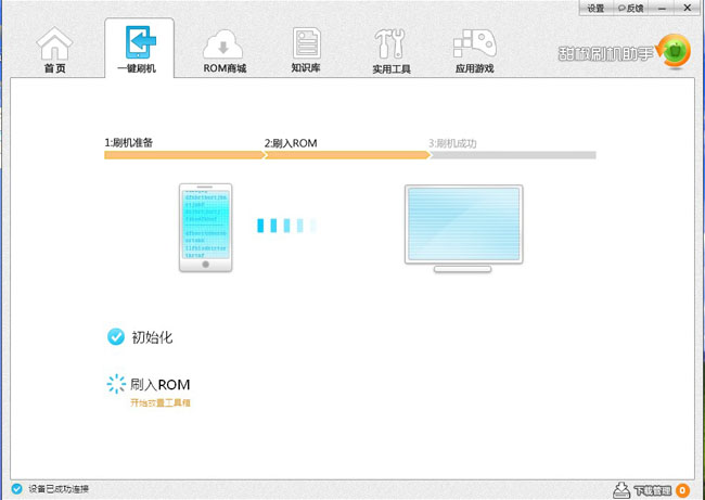 第六步,ROOT下載完成后,點擊一鍵刷機選擇要刷的包,自動進(jìn)入一鍵刷機界面。點擊“開始刷機”進(jìn)入了智能刷機模式,你要做的就是激動一下,不用去想其他的了。