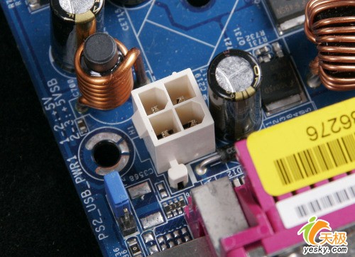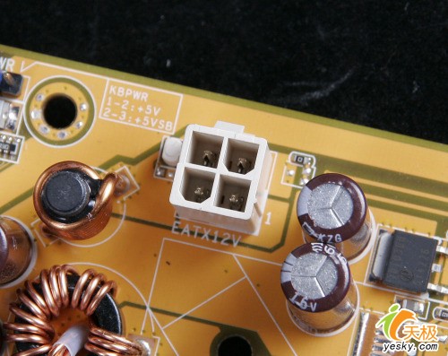 為主板供電的接口采用了防呆式的設(shè)計(jì),只有按正確的方法才能夠插入。通過(guò)仔細(xì)觀察也會(huì)發(fā)現(xiàn)在主板供電的接口上的一 面有一個(gè)凸起的槽,而在電源的供電接口上的一面也采用了卡扣式的設(shè)計(jì),這樣設(shè)計(jì)的好處一是為防止用戶反插,另一方面也可以使兩個(gè)接口 更加牢固的安裝在一起。