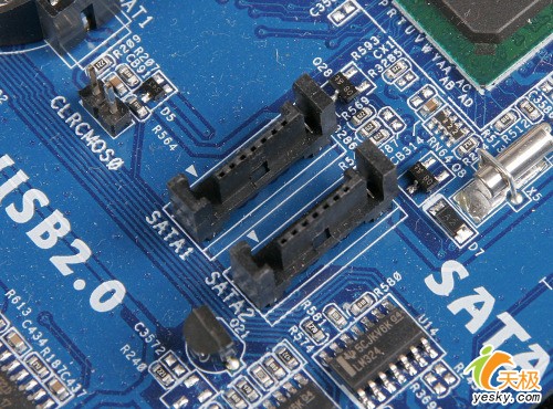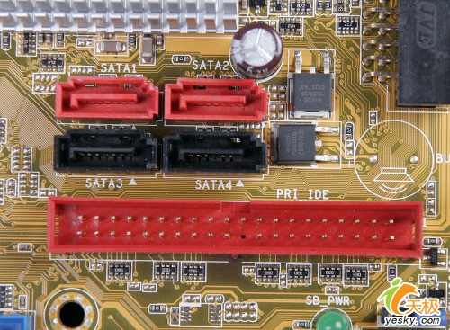 以上兩幅圖片便是主板上提供的SATA接口,也許有些朋友會(huì)問(wèn),兩塊主板上的SATA口“模樣”不太相同。大家仔細(xì)觀察會(huì) 發(fā)現(xiàn),在下面的那張圖中,SATA接口的四周設(shè)計(jì)了一圈保護(hù)層,這樣對(duì)接口起到了很好的保護(hù)作用,在一起大品牌的主板上一般會(huì)采用這樣的 設(shè)計(jì)。