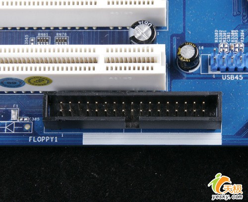 我們?cè)谝恍┲靼迳线€會(huì)看到一個(gè)上圖中這樣的接口,樣子與并口PATA接口相同,但略短,這便是軟驅(qū)的數(shù)據(jù)線接口,雖然 目前軟驅(qū)已沒(méi)有多少人使用,但在某些主板上依舊能夠見(jiàn)到。