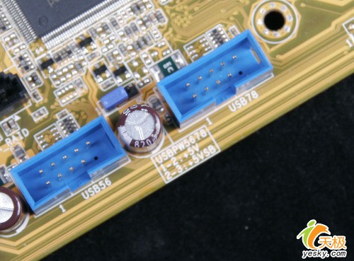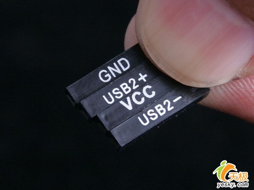 可以看到,上圖的USB接口有些類似于PATA接口的設(shè)計(jì),采用了防呆式的設(shè)計(jì)方法,大家只有以正確的方向才能夠插入U(xiǎn)SB 接口,方向不正確是無(wú)法接入的,大大的提高了工作效率,同時(shí)也避免因接法不正確而燒毀主板的現(xiàn)象。