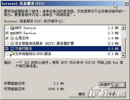 安裝要靈活一些。在控制面板里依次選擇“添加或刪除程序”的“添加/刪除Windows組件”;雙擊“應(yīng)用程序服務(wù)器”,再雙擊“Internet信息服務(wù)”,選中“萬維網(wǎng)服務(wù)”(注:此選項下還可進一步作選項篩選,請根據(jù)自己需要選用,如下圖所示),點確定即安裝完成。