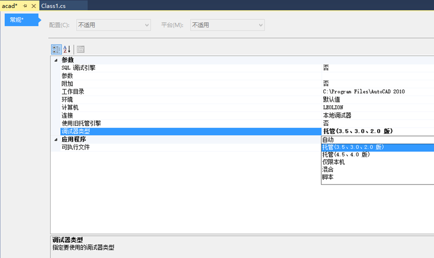 設(shè)置 調(diào)試器類型 為 托管(3.5、3.0、2.0版)