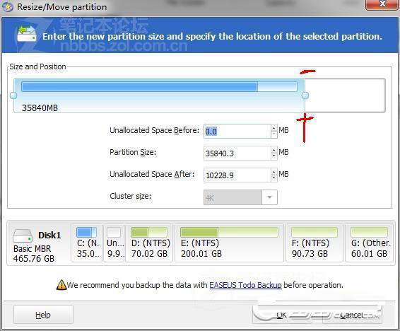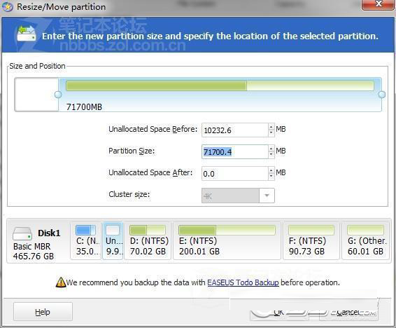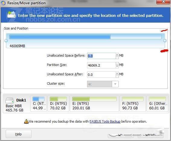 拖動上面的硬盤容量進度條,如果感覺到不精確,還是輸入數(shù)字把,擴容的容量就非常精確了,不過輸入數(shù)字時,有時你發(fā)現(xiàn)輸入的分區(qū)是沒有用的,先把剩余的D盤容量確定好吧!也是剩下分區(qū)吧!