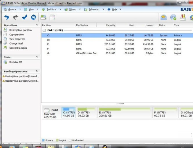 可以看到C盤容量還是35GB,D盤也是原來的,這個軟件非常安全的,在沒有確認前,我們可以隨意點.