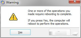 第一個警告!別怕,勇敢的確認啊,警告提示意思"就是一個或者多個操作需要系統(tǒng)重新啟動!"