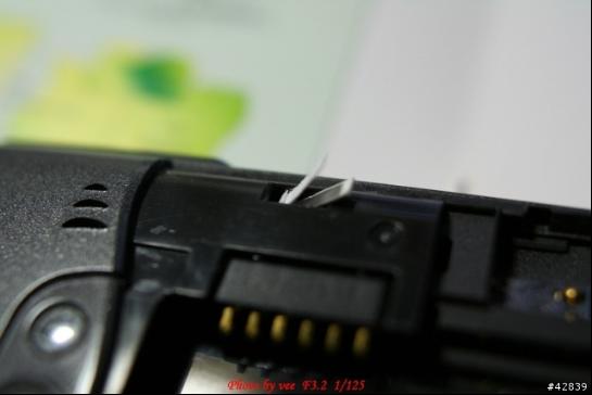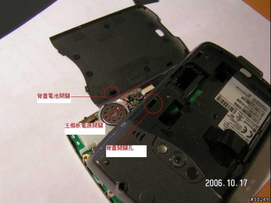 (5)要測試有沒有確實壓住開關(guān),只要把電池如圖放入電池室內(nèi),然后開開關(guān)可以啟動,就表示這個電池開關(guān)已經(jīng)被確實壓住而恒開,然后把背蓋裝上即可,不過多了紙片會比較難滑入,但是因為紙片可以壓縮,所以還是可以順利蓋上的。