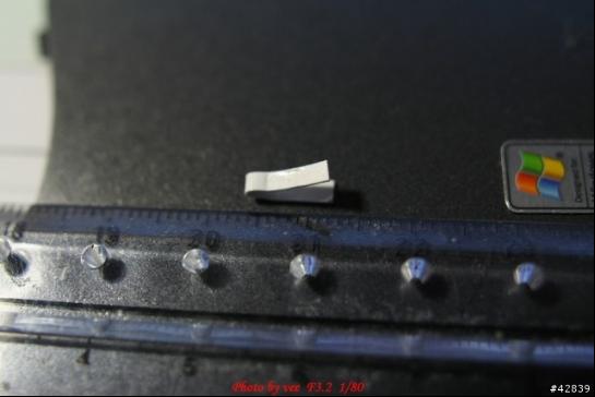 (3)按照(2)將此紙片滑入槽內(nèi),對折后的8mm長度剛好可以向內(nèi)延伸壓住機板上的開關(guān)到底,也同時填滿這個凹槽;