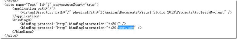 其實(shí)原理和更改Web.config文件會(huì)導(dǎo)致應(yīng)用重啟啟動(dòng)是一樣的,因?yàn)榻壎ㄓ蛎麜r(shí)實(shí)際在C:\Windows\System32\inetsrv\config\applicationHost.config文件中增加一了一段配置,如下: