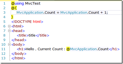 3.在視圖頁(yè)對(duì)MvcApplication中的Count進(jìn)行++并輸出