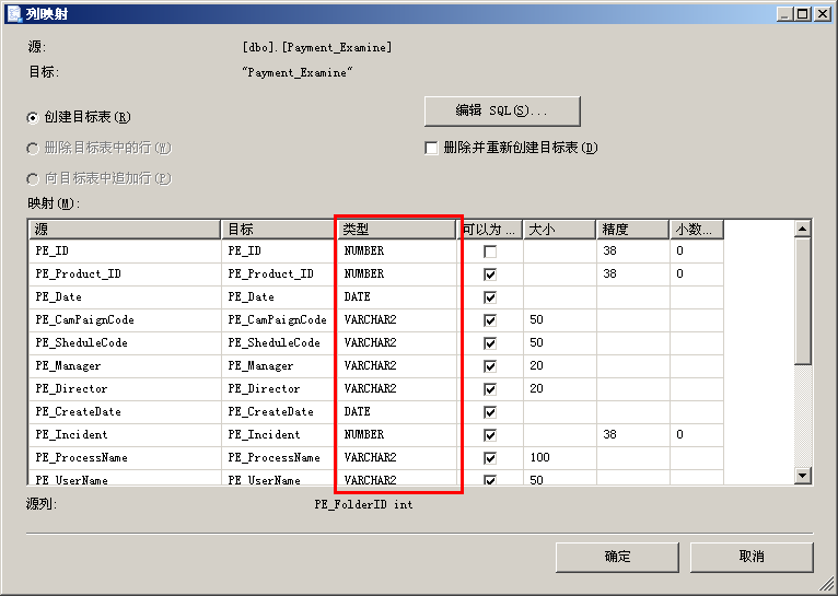 由于sqlserver的t-sql與oracle的pl/sql定義數(shù)據(jù)類型不一樣,這里注意要修改類型:
