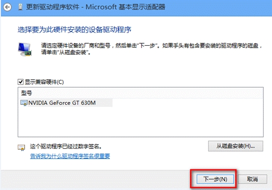 3、從計算機的設備驅動程序列表中選取,下一步;