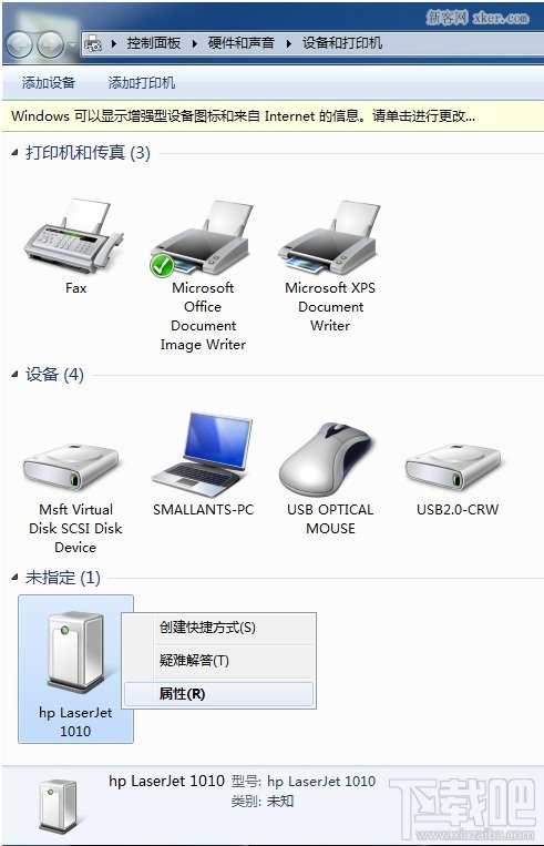 3.打印機出現(xiàn)在未指定設(shè)備中,點擊屬性