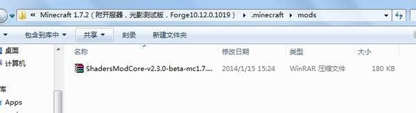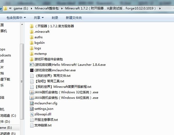 (注意:原版的1.7.2是沒有“mods”這個(gè)文件夾的,需要安裝了API才有)