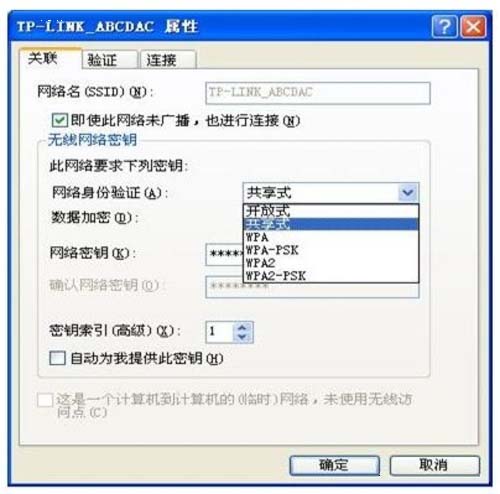 無線路由器設(shè)置WEP加密安全選項選擇的是“共享密鑰”如下圖所示