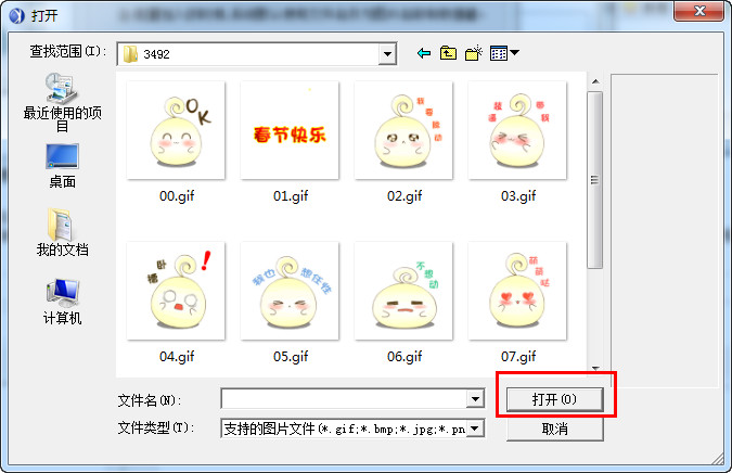 3、點(diǎn)擊上面的導(dǎo)入按鈕--找到之前存放下載好的騰訊通表情包