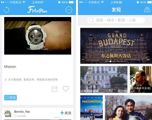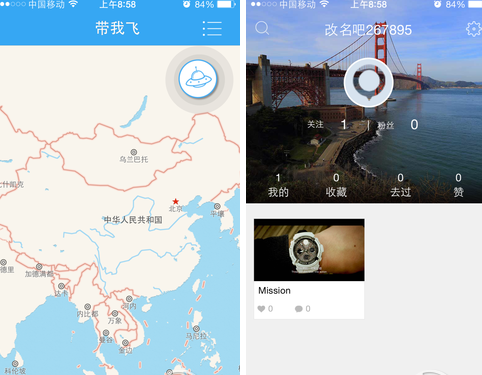 點(diǎn)擊“足記”可以看到附近人分享的照片,以及一些熱門的圖片分享;在“發(fā)現(xiàn)”中可以搜索國家、城市、影視和人物,比如輸入上海就會(huì)有相近的圖片出現(xiàn);“飛呀”中會(huì)有一個(gè)小飛碟帶著你滿處跑,告訴大家世界各地的信息;最后的“個(gè)人”就是自己賬戶里的圖片等內(nèi)容。