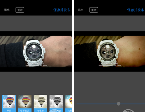 加完文字,選擇適合的濾鏡,點(diǎn)保存并發(fā)布,其實(shí)就相當(dāng)于社交應(yīng)用的分享,只是把照片分享到這個(gè)App中,照片會(huì)自動(dòng)存儲(chǔ)在照片庫中。同時(shí)也可以分享到包括微信、微博等社交工具。想象一下,發(fā)一組自己的電影大片在朋友圈秀一秀,絕對(duì)會(huì)有很多人點(diǎn)贊。
