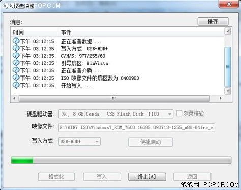 在一切都搞定后就是一段等待的時間,然后一個新的系統(tǒng)安裝盤就這樣做好了,是不是很簡單,當然閃存卡和移動硬盤的制作工序與U盤是一摸一樣的,另外雖然在安裝時會把之前的文件全部刪除,但是寫入后你的移動存儲產品的剩余空間還是可以利用的,這點不需要擔心。