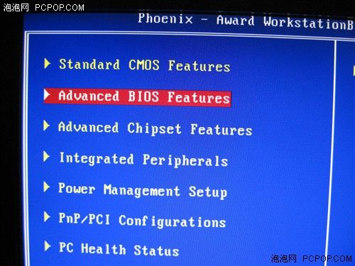 選擇第二行Advanced BIOS Features(高級BIOS設置),按回車進入以下界面: