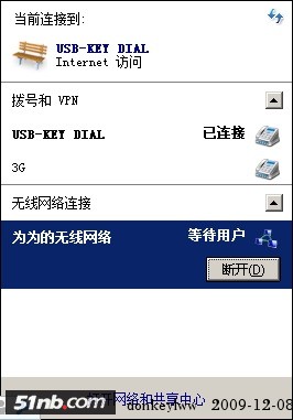 到這里并沒(méi)有完,一定要把3G撥號(hào)連接設(shè)置共享,不然只能組成一個(gè)沒(méi)有Internet連接的無(wú)線局域網(wǎng)