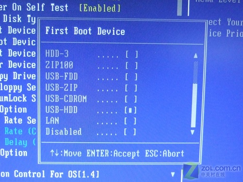 最常見的Phoenix-Award的bios選項,選擇USB-HDD即可