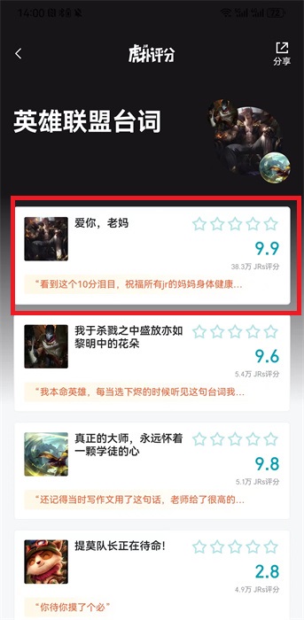 虎撲英雄聯(lián)盟臺詞評分排行榜在哪看