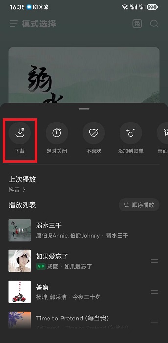 2、在彈出的界面中點擊【下載】就可以下載音樂,如果是像下載指定的歌曲,就需要去搜索對應(yīng)的歌曲名,進入到播放界面;