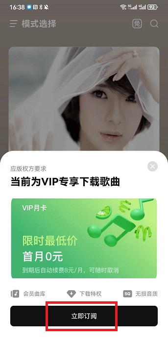 4、這個會員可以通過看兩個廣告獲得一天的會員,就可以免費的進行下載,可以選擇不同的音質(zhì)。