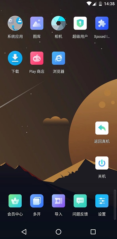3、在桌面上可以看到有【返回真機(jī)】【關(guān)機(jī)】選項(xiàng),可以根據(jù)自己的需求去使用,返回真機(jī)則是不關(guān)閉虛擬機(jī),還可以輕松的切換回來(lái),不需要加載;