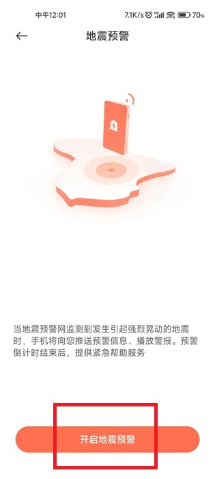 4、隨后在其功能界面點(diǎn)擊打開下方的【開啟地震預(yù)警】;