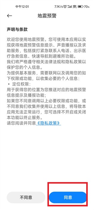 5、在點(diǎn)擊開啟之后,需要通過一系列的【同意】條款,允許手機(jī)打開該功能;