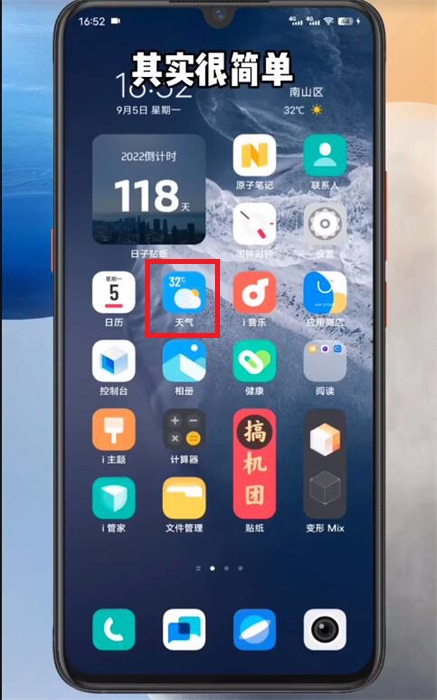 1、在我們的手機(jī)上,找到【天氣】app,這個是我們手機(jī)自帶的,打開進(jìn)入到天氣軟件之中;