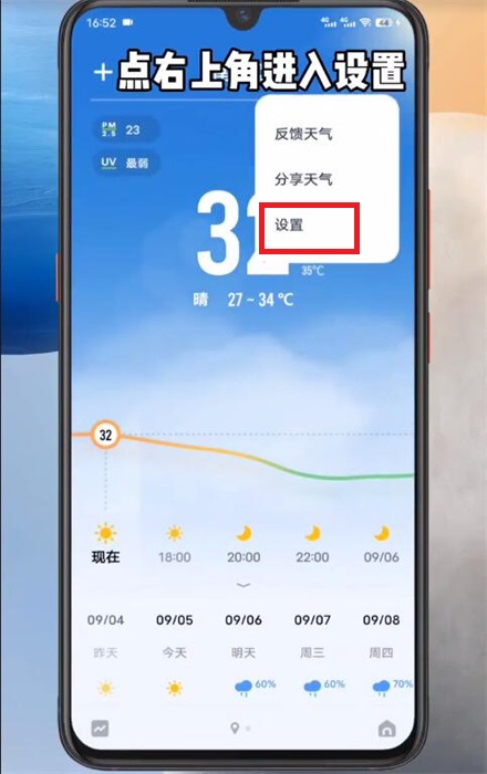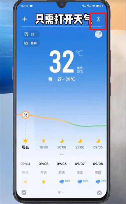 2、在天氣軟件界面,點(diǎn)擊右上角的【...】就可以喚出功能;