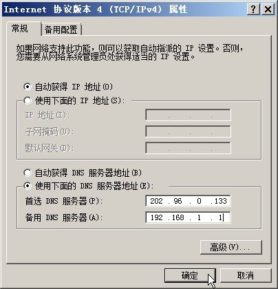 解決方案:這并非是一種非常普遍的限制,更換了DNS服務(wù)器地址,問題解決。具體解決方法為:右擊“本地連接”,選擇“屬性”命令,在打開窗口中雙擊“Internet協(xié)議(TCP/IP)”(如圖1),此時(shí)可以看到如圖2所示窗口,選擇“使用下面的DNS服務(wù)器地址”一項(xiàng),在主DNS中輸入當(dāng)?shù)豂SP服務(wù)商的DNS服務(wù)器IP地址,同時(shí)在輔助DNS中輸入當(dāng)前內(nèi)網(wǎng)路由器的IP或者DNS服務(wù)器地址的IP。這樣,我們的網(wǎng)卡會(huì)默認(rèn)使用當(dāng)?shù)爻鞘械腄NS的服務(wù)器來直接解析DNS,如果當(dāng)?shù)爻鞘械腄NS失效,則會(huì)自動(dòng)通過網(wǎng)路由器或者內(nèi)部DNS服務(wù)器來解析地址,整體網(wǎng)絡(luò)的速度自然會(huì)提升。迅雷下載時(shí)當(dāng)然也會(huì)“水漲船高”了。