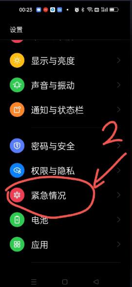 4、在設(shè)置功能中,我們需要找到【緊急情況】功能,去其中尋找;