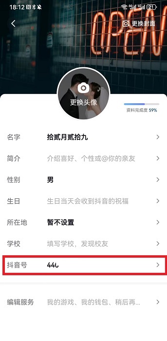 3、在個(gè)人信息編輯界面中,我們就可以看到【抖音號(hào)】,點(diǎn)擊抖音號(hào)就可以進(jìn)入到修改界面;