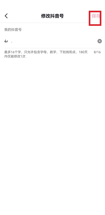4、修改界面中hi只需要按照要求完成編輯就就可以點(diǎn)擊右上角的【保存】完成抖音號(hào)的修改。