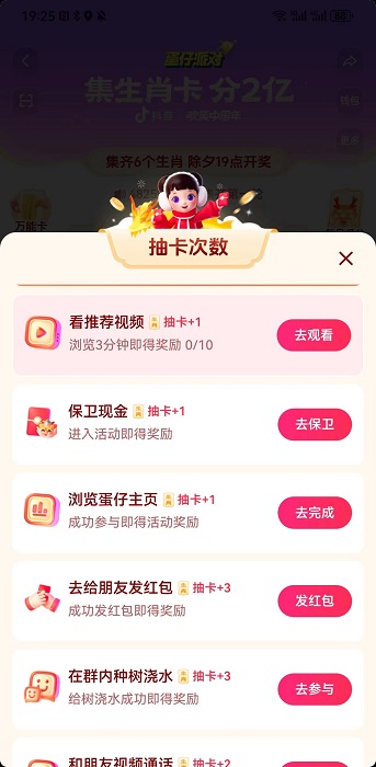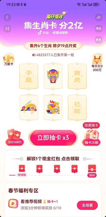 2、在活動界面,我們就可以參與到抽卡活動中,每天都會有抽卡機會,通過抽卡就可以集各種生肖卡;