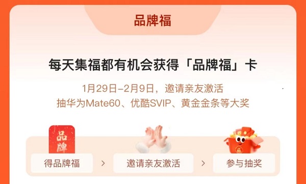 2、品牌??ǎ?/strong>想要參與抽獎的話,還有各種品牌??ǎ梢詤⑴c抽獎,邀請好友幫助我們激活,就可以參與抽獎,可以獲得華為mate60還有金條大獎,可以說是十分誘人的。