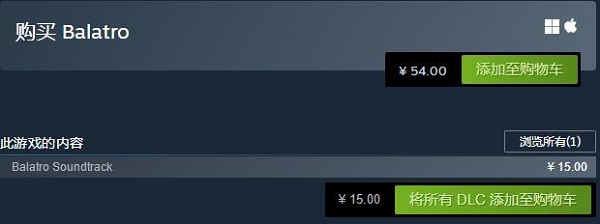 游戲的價格為:54元,DLC為15元,Balatro是一款以撲克為靈感的魔幻建牌游戲,你將全情投入于打造強大的增效并取得巨大勝利。