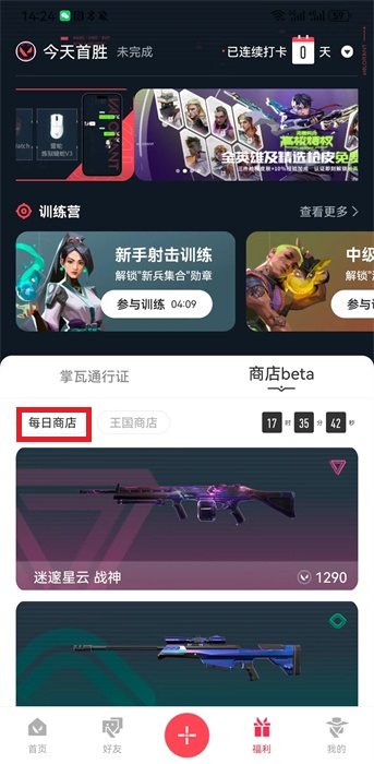 掌上無畏契約是無畏契約的的助手,這是非常好的戰(zhàn)績查詢工具,我們能夠在這里看到非常多的資訊內(nèi)容,也會有更多的活動等你來參與,其中就會有一個每日商店的功能,很多用戶想要知道掌上無畏契約怎么看每日商店,下面給大家分享一下掌上無畏契約查看每日商店教程。