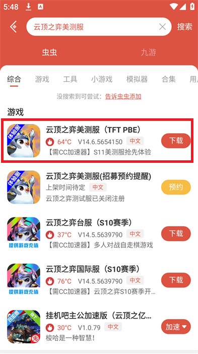 (2)、搜索到結(jié)果之后,可以看到【云頂之弈美測服(TFT PBE)】點擊進入到界面中;