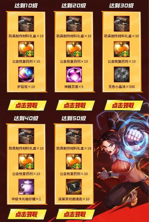4)等級禮包領(lǐng)取規(guī)則與限制:活動期間,角色等級滿足即可領(lǐng)取,每檔單賬號僅限領(lǐng)1次;活動期間下載注冊《地下城與勇