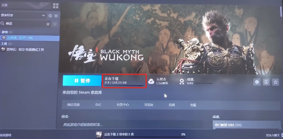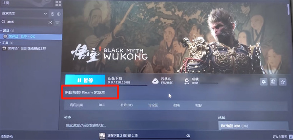 1、打開我們的steam,要保證給我們家庭共享的義父已經(jīng)購買了此游戲,然后點擊打開黑神話悟空的游戲界面;