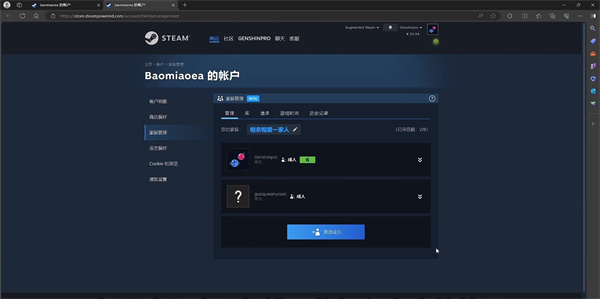 14、最后我們回到steam,就可以看到已經(jīng)加入了家庭共享,就完成了所有的操作,正常共享電子義父的游戲庫(kù)。