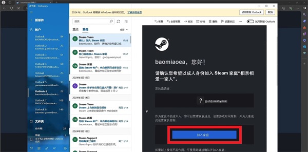 13、點(diǎn)擊確認(rèn)之后就需要轉(zhuǎn)頭來(lái)到郵箱之中,然后需要在郵箱中去進(jìn)行驗(yàn)證,點(diǎn)擊【加入家庭】即可;