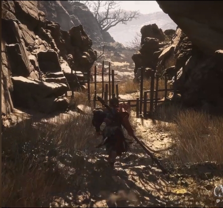 1、我們?cè)诘诙P(guān)的時(shí)候可以在地圖中看到有一個(gè)木柵欄攔住的小路,我們進(jìn)入這條小路;
